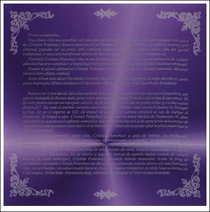 Acest album este darul părintelui Cristian Pomohaci pe care îl primim cu suflet deschis și curat, acum în preajma Sfintei sărbători a Crăciunului.
